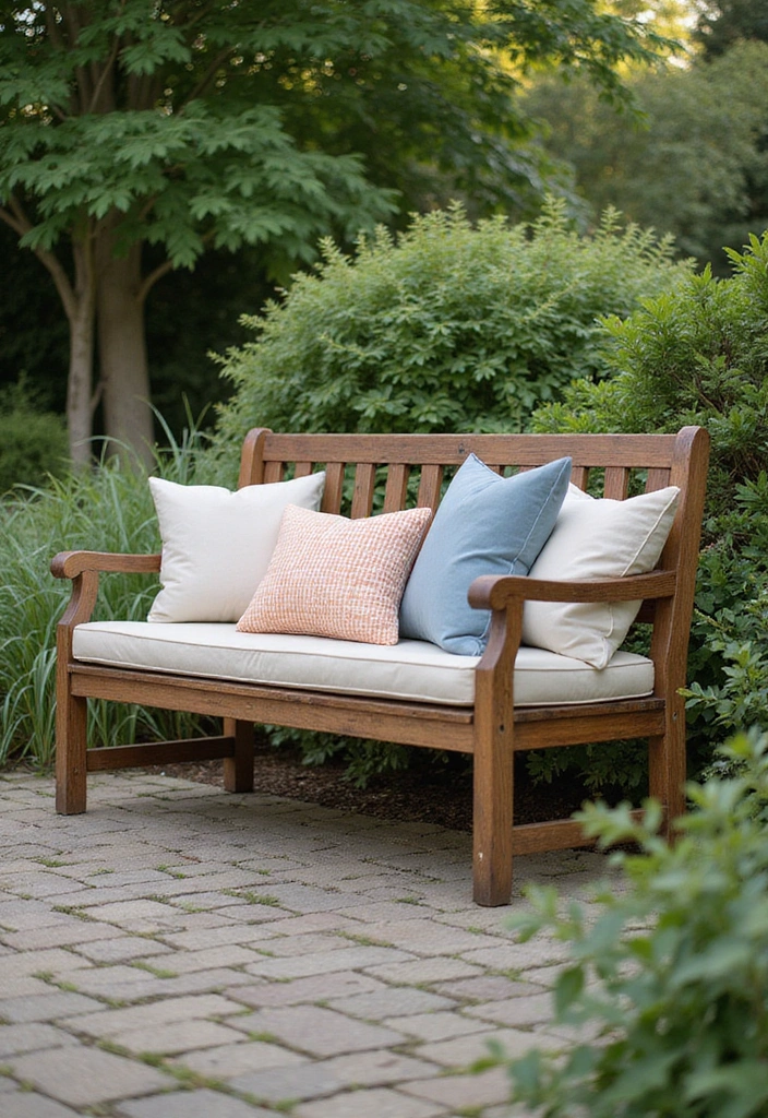 An outdoor bench can provide both seating and decor to your yard. You can build one from wood or repurpose old furniture for a unique look. To elevate your bench’s comfort, consider adding weather-resistant outdoor cushions, such as the weather-resistant outdoor cushions that offer breathable memory foam for a cozy seating experience. Decorative pillows can enhance the style of your bench as well.