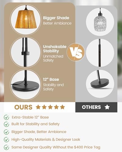 Standing at an impressive 68 inches tall, this floor lamp emits a warm, welcoming glow that brightens any corner of your home. Its sturdy 12-inch base ensures stability while retaining an air of elegance. Say goodbye to flimsy lighting—this lamp combines style with strength.