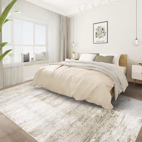 6×9 Washable Area Rug: Soft Neutral Abstract Non-Slip Low Pile Carpet for Living Room & More (Beige)