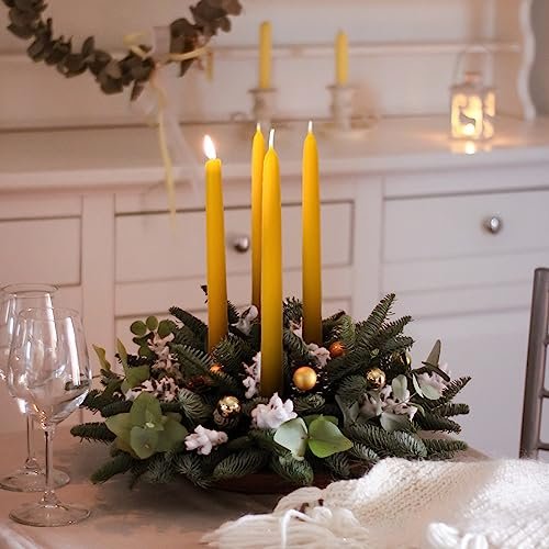 Aglary 16PCS Handmade 9″ Beeswax Taper Candles, Dripless & Smokeless, 9-Hour Burn Time.