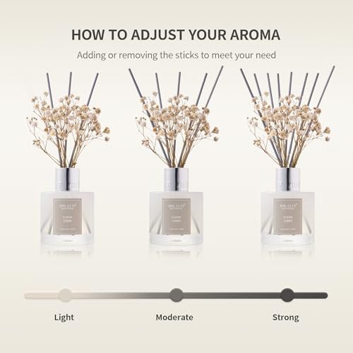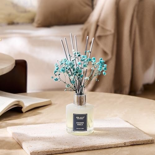 Customizable Fragrance Experience: Enjoy personalized scent control with our premium materials. Easily adjust the strength of your fragrance by adding or removing reed sticks to suit your mood. Watch as the fabric sticks soak in the sumptuous aroma—typically in just 1 or 2 days. When you sense the scent fading, simply flip the reeds or replace them for a fresh burst of Cashmere Vanilla.