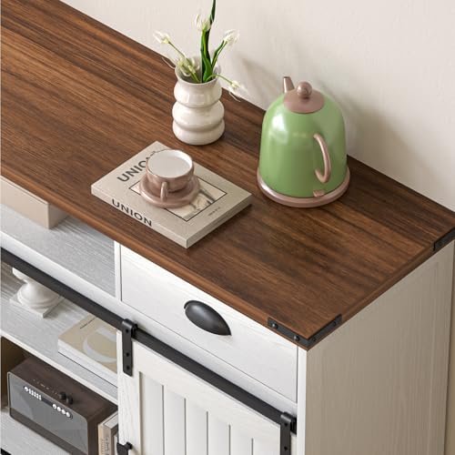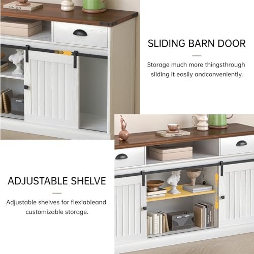 Charming Barn Door Design: Bring a touch of vintage charm to your home with our exquisite barn door-style TV stand. The smooth, sliding doors not only enhance the aesthetic but also provide functionality, seamlessly blending into any décor—be it rustic, modern farmhouse, industrial, or coastal. This versatile piece serves as a captivating centerpiece in any room.