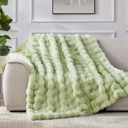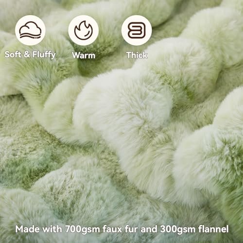 Anysay 1000GSM Faux Fur Throw Blanket – Soft, Cozy, Thick Rabbit Blanket for Couch & Bed, 50″x60″, Green.
