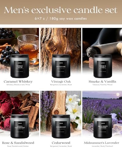 AOOVOO Men’s Scented Candle Set – 6 Pack, 300-Hour Soy Wax Candles for Gifts & Home Use