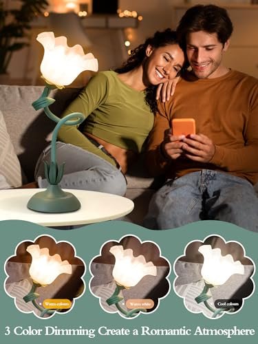 AQDZCNF Flower Table Lamp: Vintage LED Night Light with 3 Color Modes for Bedroom and Living Room Decor (Green)