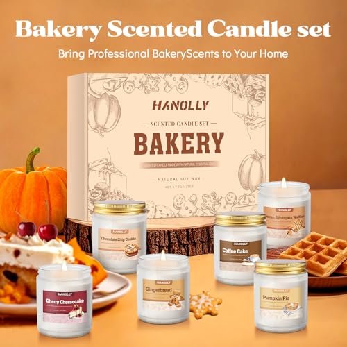 Bakery Candles Set: 6-Pack Fall & Winter Scented Soy Wax Jar Candles – Pumpkin Pie, Coffee Cake & more!