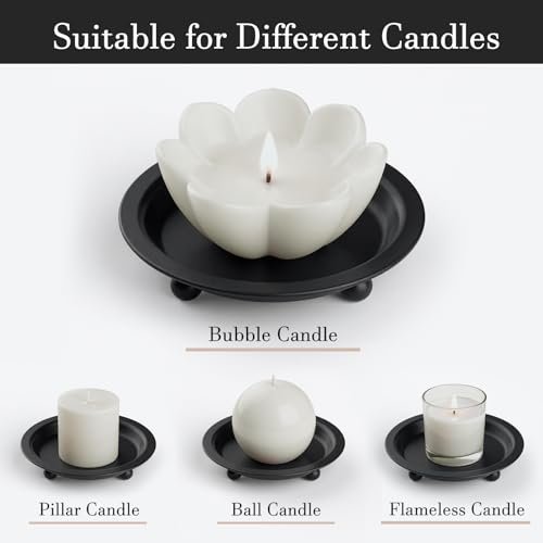 Beeutik Black Candle Holder Set: 2 Round 4.13″ Iron Candle Stands for Pillar & Ball Candles, Perfect for Home Decor.