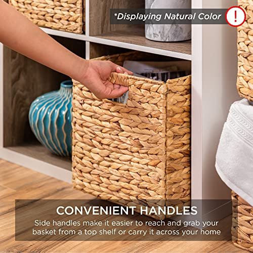 Best Choice Products Pack of 5 Water Hyacinth Cube Storage Baskets, 10.5″x10.5″, Collapsible Organizers for Laundry & Kids’ Rooms – Brown
