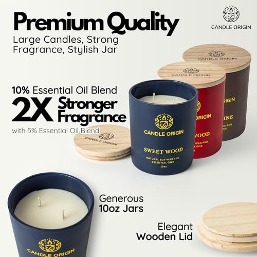Candle Origin – 3×10 oz Men’s Scented Candle Gift Set – Natural Soy Wax for Home & Office