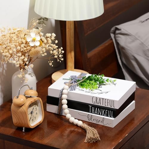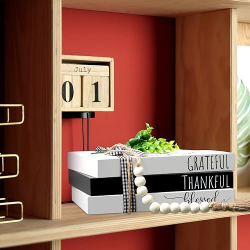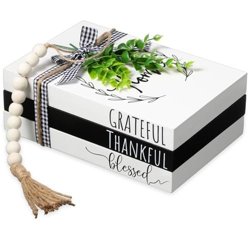 Elevate your home decor with our charming Decorative Faux Books Set—the perfect blend of style and sentiment! This delightful collection features three beautifully crafted hardcover faux books that read [Thankful], [Grateful], and [Blessed], instantly bringing warmth and character to any room.