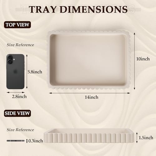 Measuring 14" (L) x 10" (W) x 1.5" (H), this versatile tray is the perfect centerpiece for your coffee table, an elegant serving tray for breakfast in bed, or an eye-catching addition to your ottoman. Its sleek, minimalist design effortlessly blends with any interior style, making it a staple for modern homes.