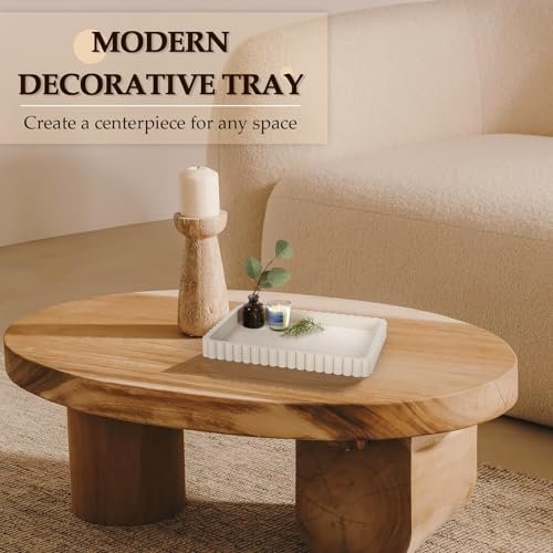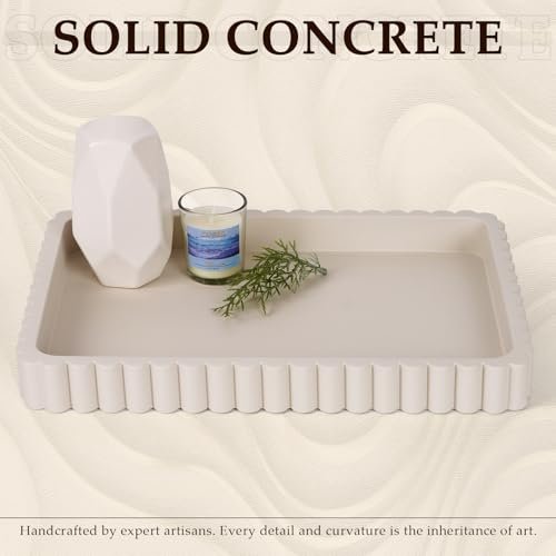 Elevate your coffee table decor with our neutral-toned concrete tray that features a chic rectangular shape and unique fluted design. This artistic statement piece not only enhances your decor but invites admiration from guests, making your space feel more curated and inviting.