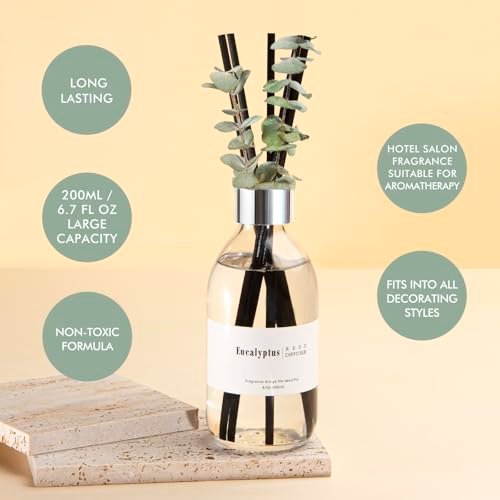 Clesh Eucalyptus Reed Diffuser Set, 6.7 oz for Home Fragrance & Bathroom Shelf Decor