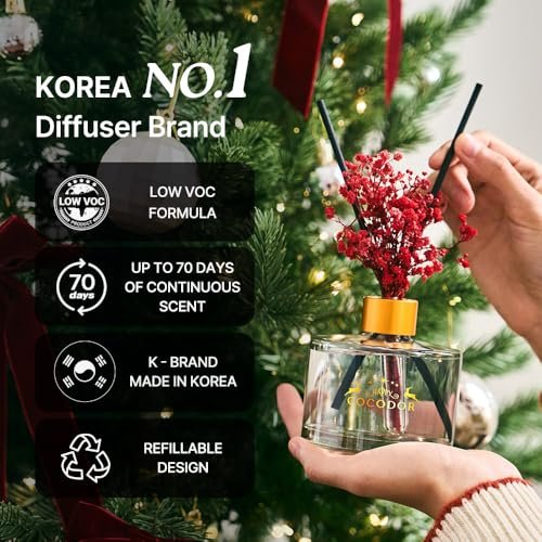 COCODOR Christmas Reed Diffuser Set 6.7oz – Snow Fig Holiday Scented Oil for Festive Home Décor
