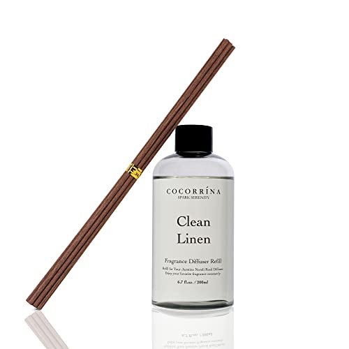 Cocorrína Clean Linen Scented Reed Diffuser Oil, 6.7 fl oz with 8 Sticks for Home Décor.