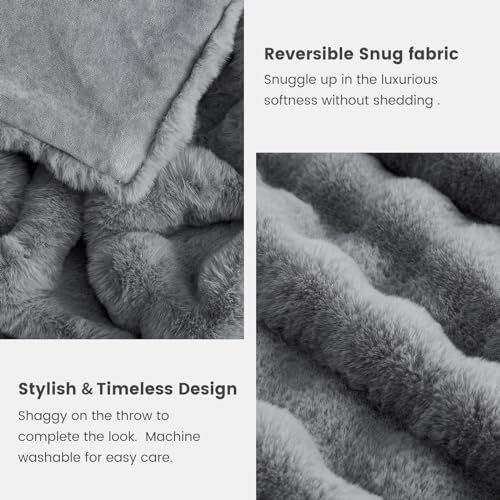 Cozy Bliss Faux Fur Throw Blanket – Plush 60×80″ Light Grey Blanket for Couch & Bedroom