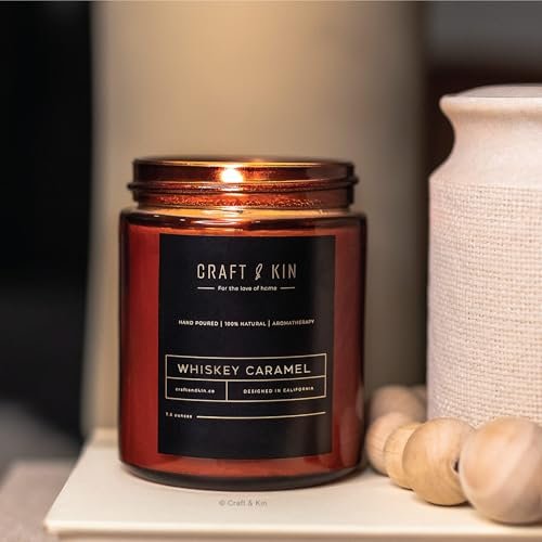 Craft & Kin Christmas Candles for Men | Premium Whiskey Caramel | 45-Hour Burn Time | All-Natural Scent