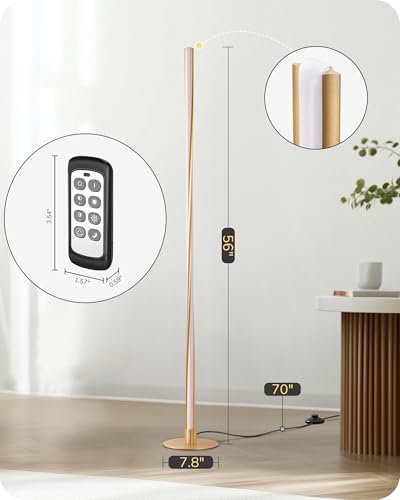 EDISHINE Helix LED Floor Lamp – 56″ Dimmable, 2700K-6000K, Remote & Foot Switch, Modern Gold Design for Home & Office