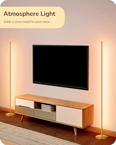 EDISHINE LED Corner Floor Lamp: Modern Slim Design, Dimmable, 57.5″ Adjustable Height, 3000K Warm White (Gold) for Living Room, Bedroom, Office.