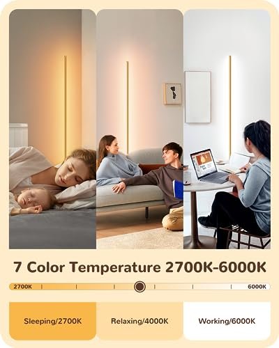 Elevate your home or business ambiance with our state-of-the-art floor lamp! Featuring seven color temperatures, ranging from cozy warm light (2700K) to invigorating cool light (6000K), you can effortlessly create the perfect atmosphere for any occasion. Need total control? Adjust the brightness from 10% to 100% to suit your needs, whether you’re hosting a dinner party or relaxing with a good book.