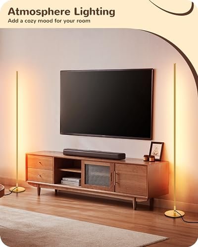 EDISHINE LED Corner Floor Lamp Set of 2 – 57.5″ Dimmable, Remote-Controlled, 7 Color Temps (Gold)