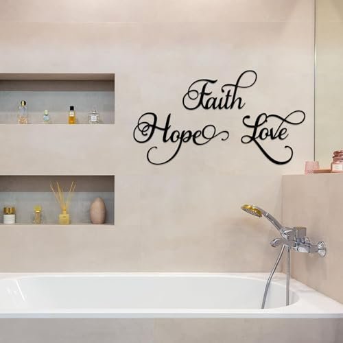 ESTART Faith Hope Love Metal Wall Art – 3-Piece Rustic Black Letter Sign for Home Decor