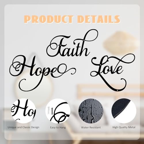 Our Faith, Hope, Love metal wall art is perfect for any setting. Whether it’s your living room, dining area, home library, or office, these pieces add a touch of elegance and warmth, inviting love and inspiration into every corner of your home.