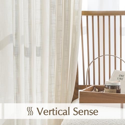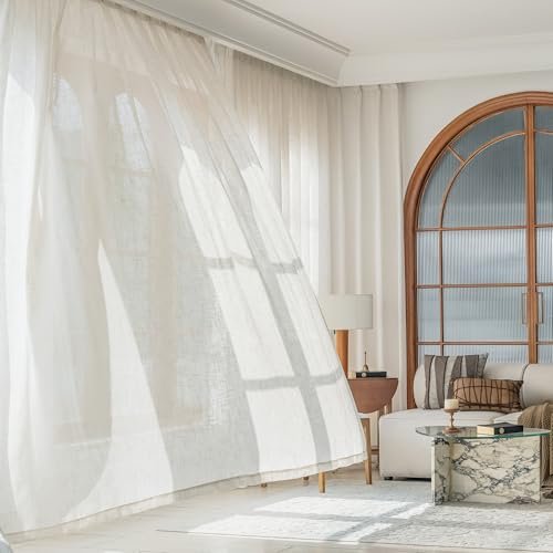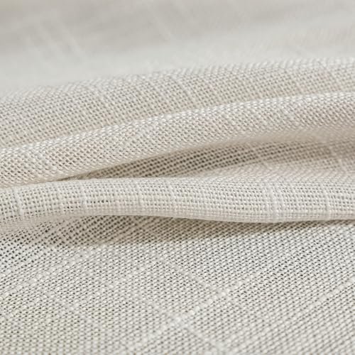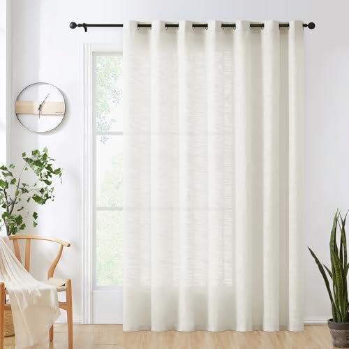 FMFUNCTEX 84″ Sheer Linen Sliding Door Curtain – Extra Wide 100″ Beige Drapes, Semi-Sheer Grommet Panel