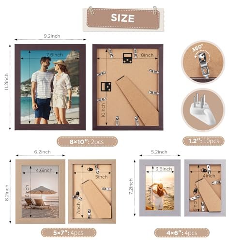 Funtopia 10-Pack Picture Frames Set: Multi-Size Collage Wall Decor for 8×10, 5×7, 4×6 Photos. Perfect for Walls or Tabletops!