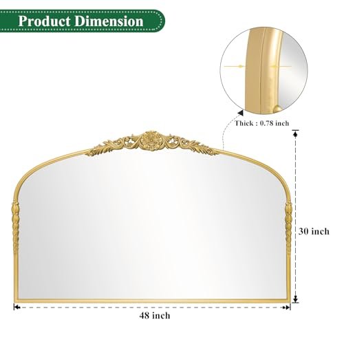 Elevate Your Space with the Antique Baroque Arched Mirror (48" x 30")