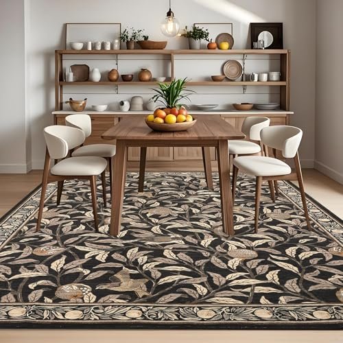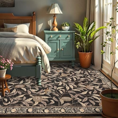 GarveeHome Boho Leaf 5×7 Rugs: Soft, Non-Slip, Washable, Stain-Resistant Carpet for Bedroom & Living Room.