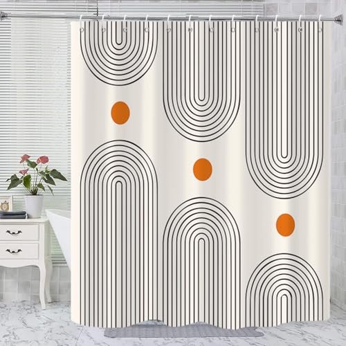 GKLEASG Boho Mid-Century Shower Curtain: Minimalist Abstract Design, Waterproof, 72×72, Includes 12 Hooks.