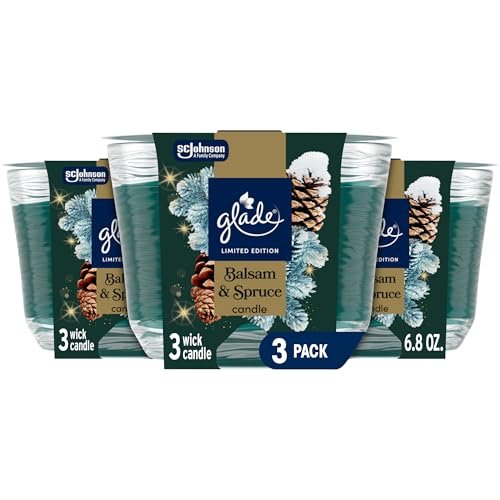 Glade 3-Wick Balsam & Spruce Scented Candle Jar, 6.8 Oz, 3 Count – Essential Oil Air Freshener