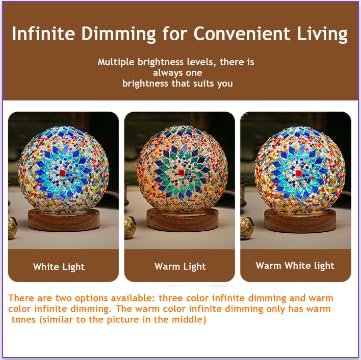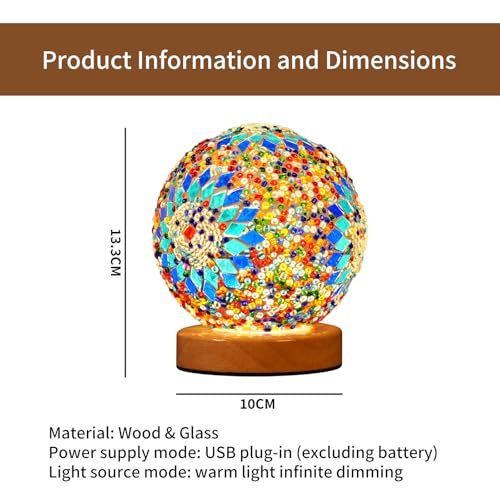 HAIDOLIANG Turkish Table Lamp (D:4.7″ x H:5.2″) – Mosaic Glass with Wooden Base, Boho Tiffany Lamp, USB Power Moroccan Lantern for Living Room Decor (Blue)