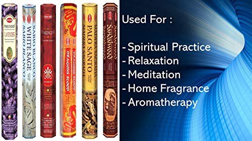 Hem Incense Sticks | 6 Boxes (20 Sticks Each) | Lavender, White Sage, Frankincense, Dragon Blood, Palo Santo, Sandalwood | 120 Sticks Total