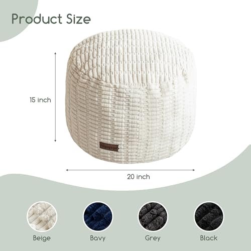HIGOGOGO Modern Round Pouf Ottoman – Foam-Filled Footrest, 20×15 inches, Beige Boho Stool for Living Room, Weddings, and Parties.