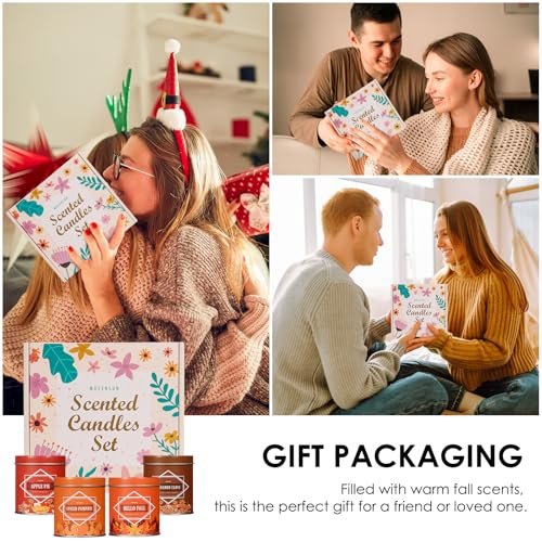 Holiday Candle Set: 4-Pack of Winter Scented Soy Candles (36oz) – Perfect Gifts for Men & Women! Scents: Cinnamon Clove, Spiced Pumpkin, Apple Pie, Hello Fall.