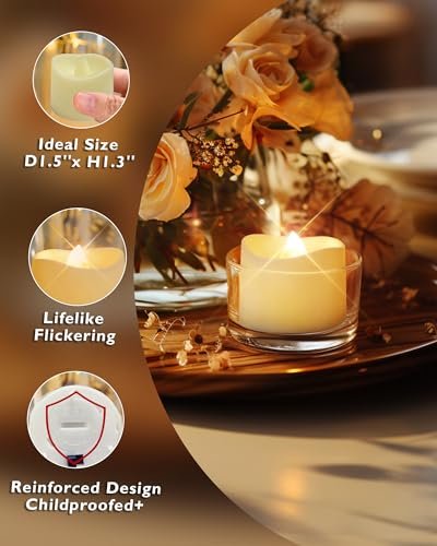 Forget the pitfalls of conventional candles: no more short burn times, fire hazards, messy wax spills, or worries about little hands or pets knocking them over. Our LED tea lights are the worry-free solution to your candle needs, combining beauty with peace of mind.