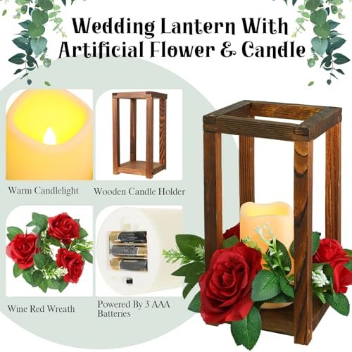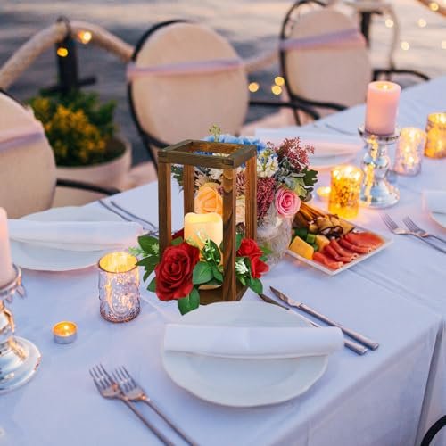 Hushee 30-Piece Rustic Wedding Lantern Centerpiece Set with Candles & Rings for Farmhouse Decor. Perfect for Valentine’s and Parties!