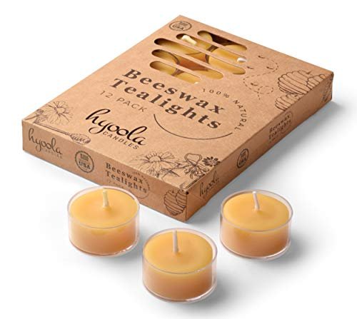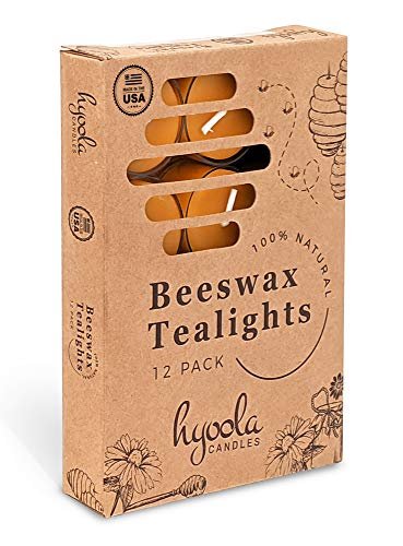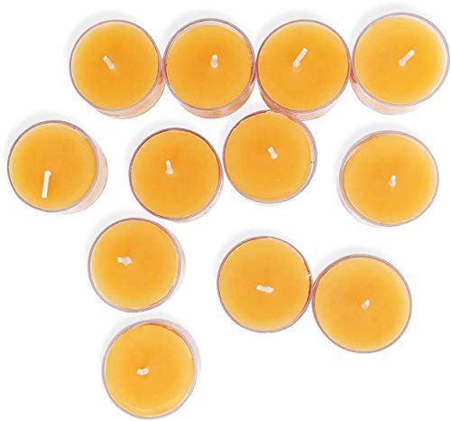 Hyoola Pure Beeswax Tealight Candles – Handmade Unscented, 4-Hour Burn Time, Clear Cup, Pack of 12
