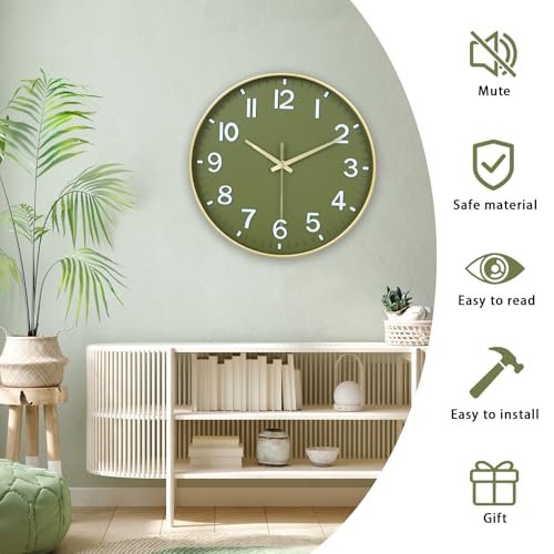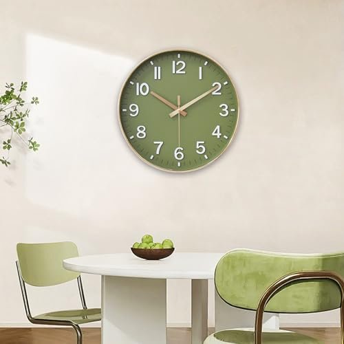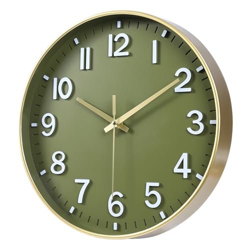 HZDHCLH Battery Operated Wall Clock – Green and Gold, 8-Inch Silent Clock with 3D Numbers for Home, Office, or Classroom Decor.