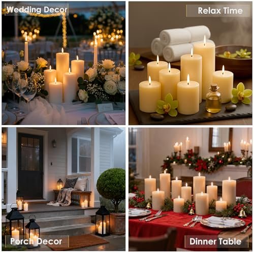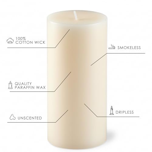 Ivory Pillar Candles Set – 12 Pack Assorted Sizes (2.8×4, 6, 8 Inch) Unscented, Dripless & Smokeless for Home Decor, Emergencies & Holiday Dinners.
