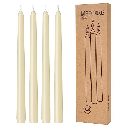 Ivory Taper Candles (4 Pack) – 10″ Dripless, Smokeless, Unscented, 8-Hour Burn – Perfect for Weddings & Home Decor