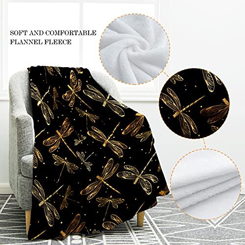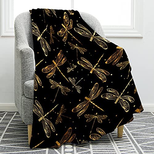 Jekeno Dragonfly Blanket: Soft, Cozy, Lightweight Throw for Women, Kids, and Home Decor – 60″x80″ in Gold & Black. Perfect for Birthdays & Christmas!