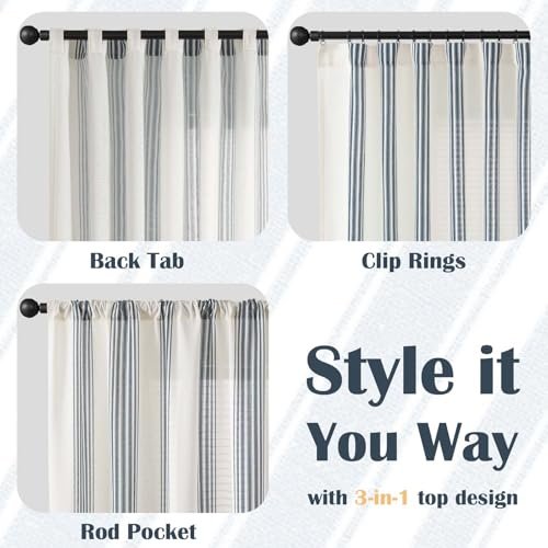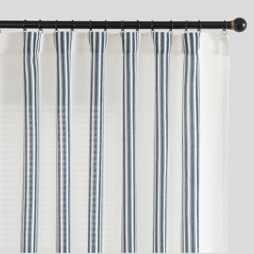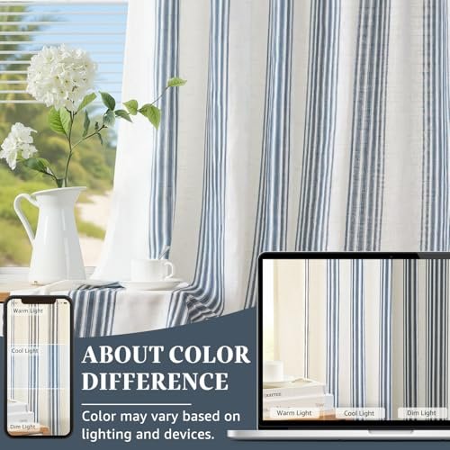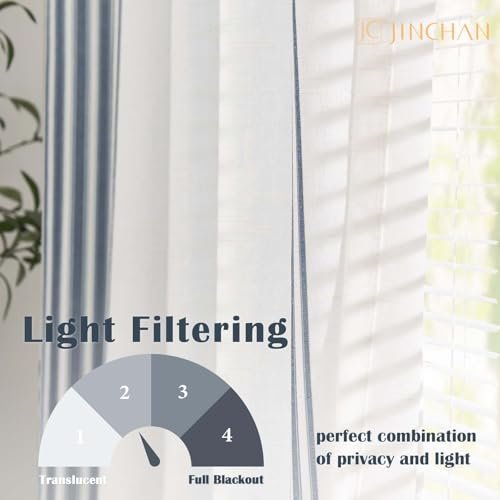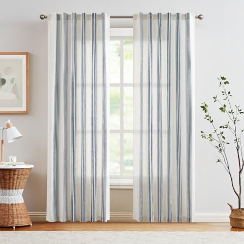 Jinchan 84-Inch Blue Striped Linen Blend Curtains – Semi-Sheer Drapes for Living Room or Bedroom (Set of 2)
