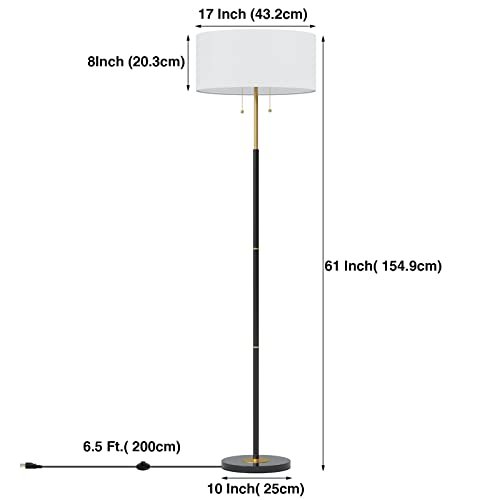 Karjoefar 2-Light Mid Century Floor Lamp with White Fabric Shade, 9W Bulb, 3 Color Temperatures for Living Room & Bedroom.