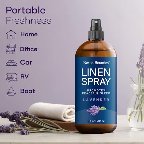 Lavender Linen Spray 8 fl oz – Refreshing Fabric & Pillow Spray for Bedding and Rooms, Soothing Mist by Nexon Botanics.