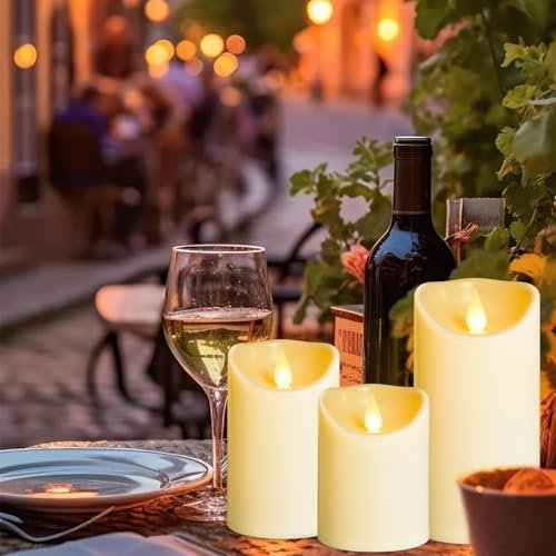 LEOSAN Flameless LED Candles – Battery Operated, Flickering, Remote-Controlled, Ivory Plastic, Ideal for Halloween, Parties, Weddings – Set of 3 (3″, 4″, 5″, 6″).