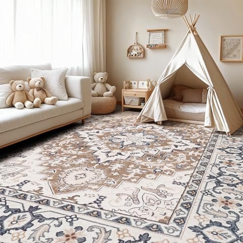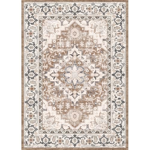 Lofus 5×7 Washable Area Rug – Vintage Boho Carpet for Living Room, Bedroom, Kitchen & Office. Soft, Non-Slip, Low Pile Design.