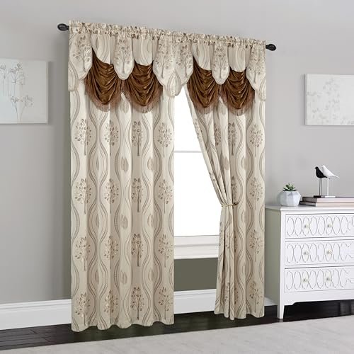 Luxurious Beige Curtain Panel Set (54″ x 84″, Set of 2) with Attached Valance and Backing. Perfect for Elegant Comfort!